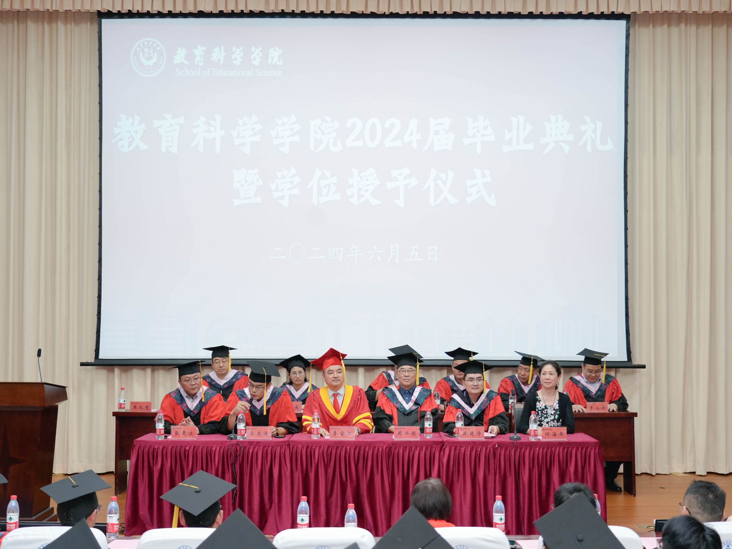 云程发轫,万里可期。6月5日下午,教育科学学院于赭山校区科技小礼堂举行2024届毕业典礼暨学位授予仪式。学院党政班子成员,学院学术委员会、学位委员会委员,各学位点点长、专业负责人,学院各科室老师、全体辅导员以及部分教师代表与全体2024届毕业生欢聚一堂,共同见证令人难忘的时刻,典礼由副院长吴文涛主持。