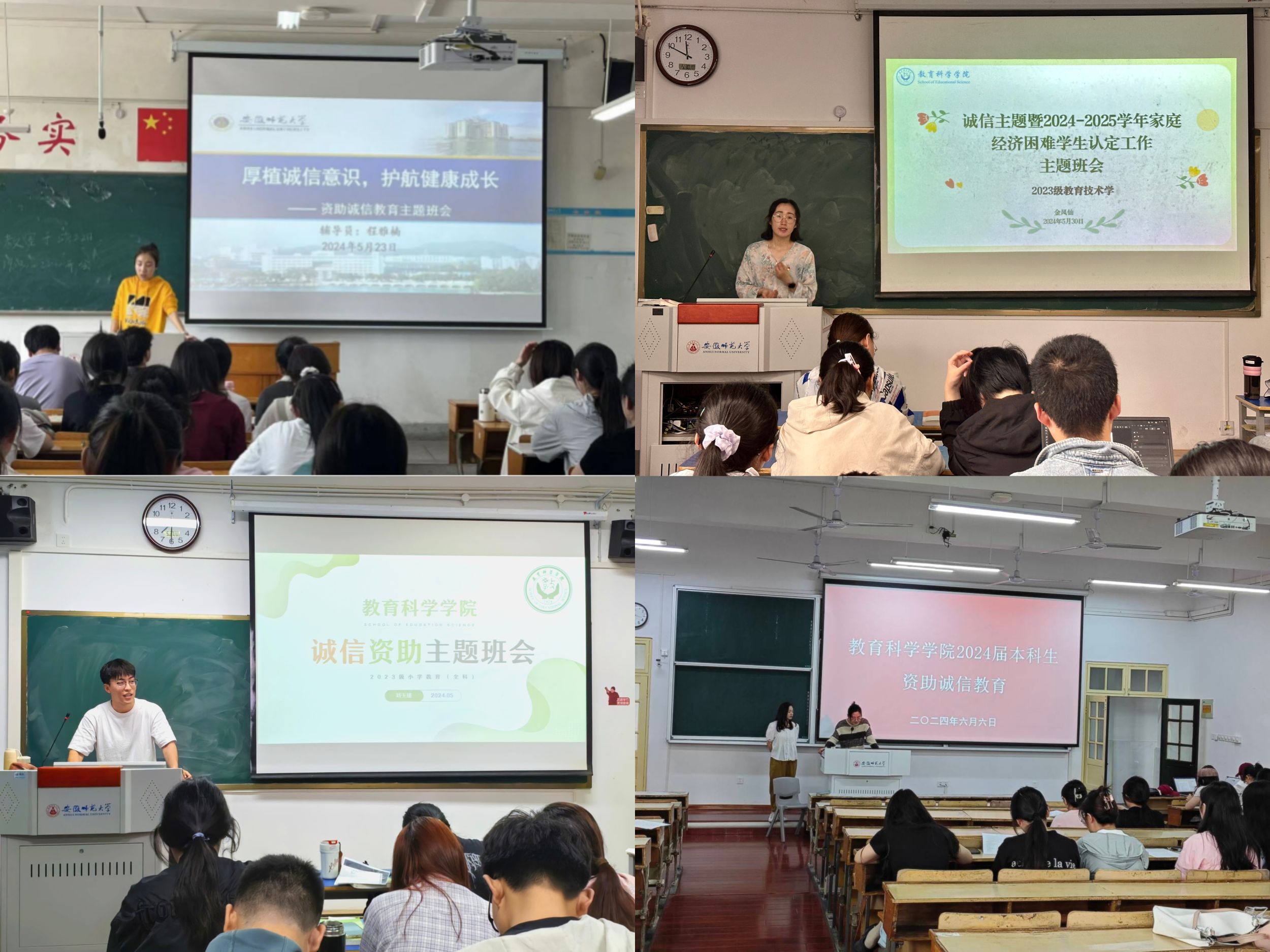 为增强资助育人效果,培养大学生诚信做人、心怀感恩、勇担责任的优秀品质,教育科学学院于五月中下旬起开展了资助诚信教育主题月系列活动。通过召开诚信主题班会、开展诚信警示教育、诚信主题作品创作等多种形式教育同学们争做诚实守信的教科人。
