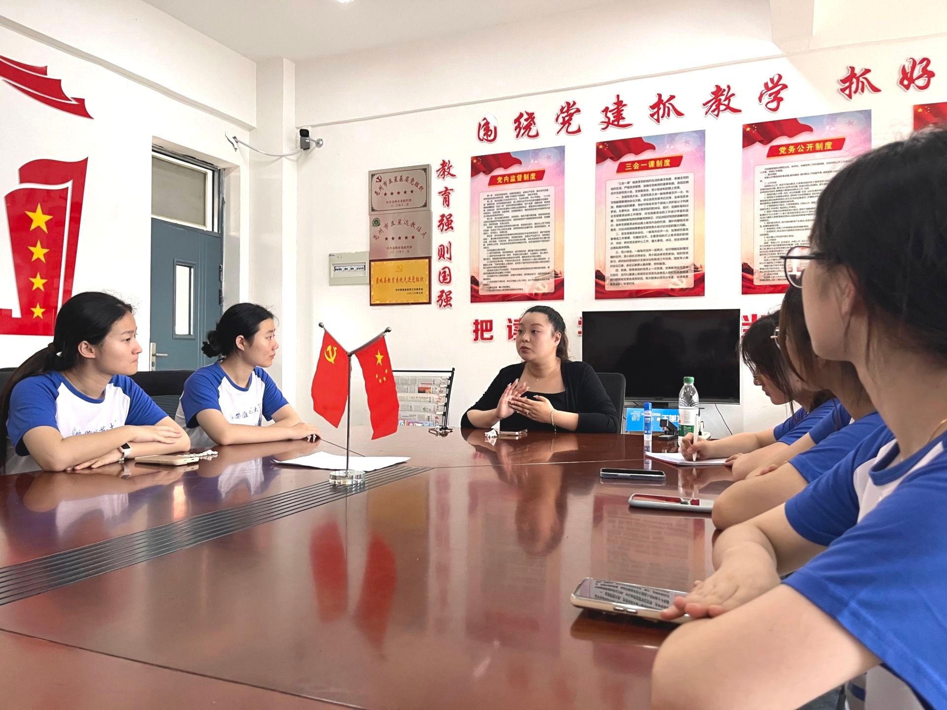 贺思琦与团队全体成员召开了一次短暂的临时会议。在这次临时会议上,她对团队成员的到来表示了热烈欢迎,并对团队此次的社会实践的主要工作做出了指示,鼓励团队成员们以饱满的激情和昂扬的斗志来开展此次实践活动。会议结束之后,贺思琦带领团队成员参观了学校的相关教学设施,鼓励团队成员利用好这些基础设施,为接下来教学活动的有序开展做好充分的准备。