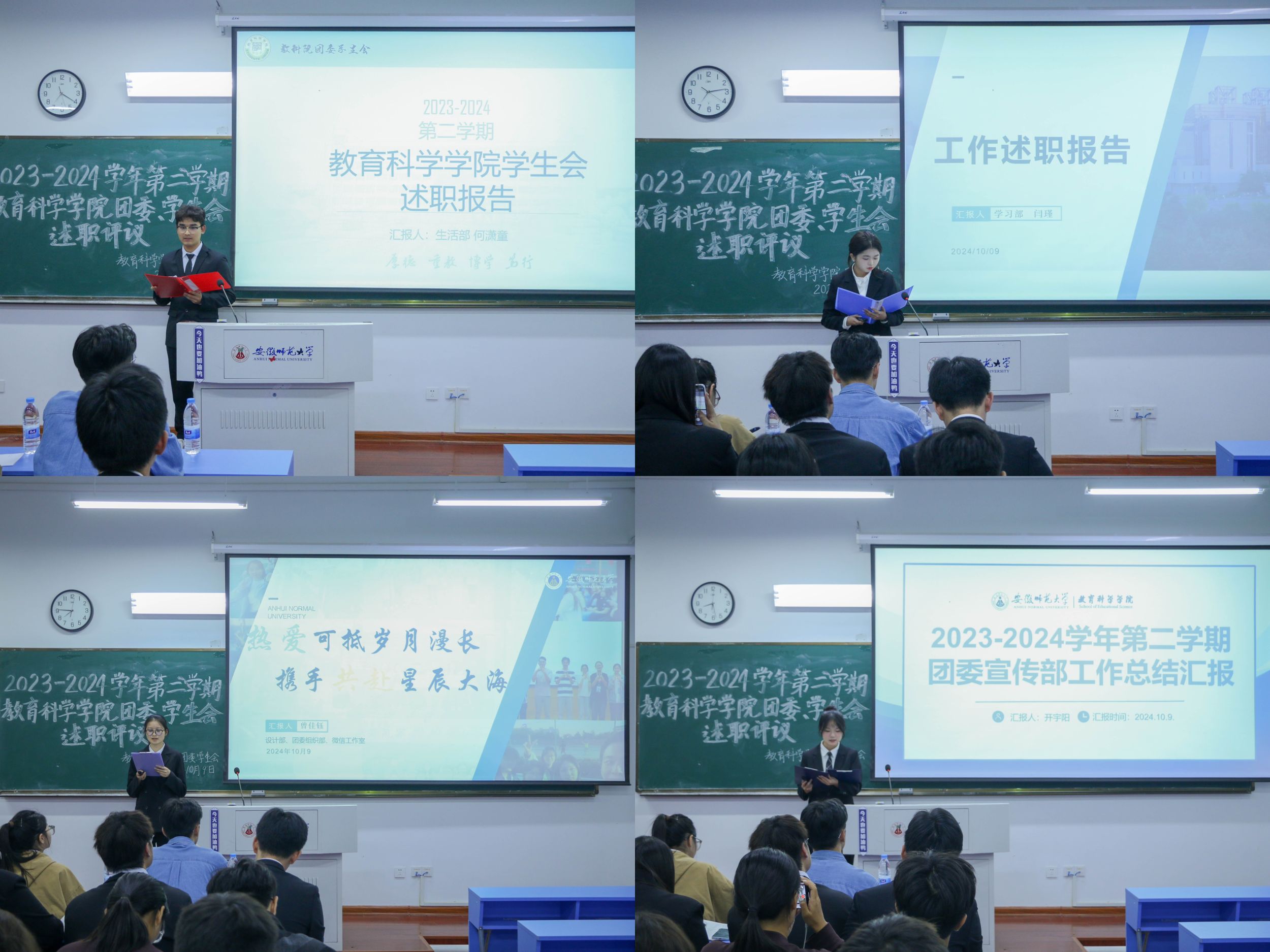 本次汇报会旨在对上一学年教科院团委、学生会的工作成果和经验进行交流总结与改进,以便更好地进行新学期的工作任务,在实践中进步,在前进中成长。新的学期中,院团委和学生会全体仍将携手共进,以更加热情激扬的精神阔步新征程,昂首向未来。