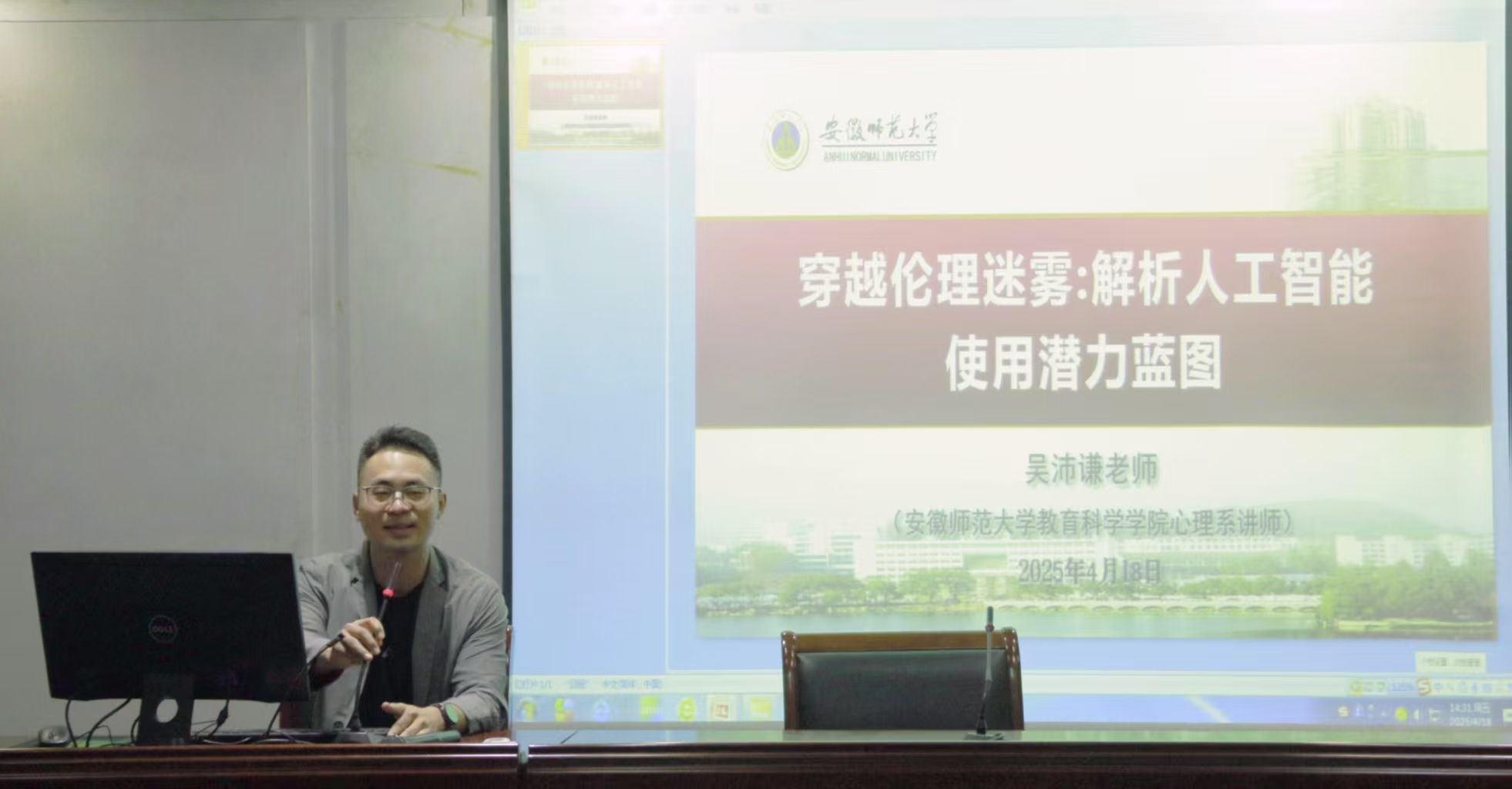 4月18日下午,教科院研究生会在学术交流中心举办“人工智能+”讲座。本次活动邀请到教育科学学院心理系吴沛谦老师,他围绕“穿越伦理迷雾:解析人工智能使用潜力蓝图”这个主题展开了深度的分享。