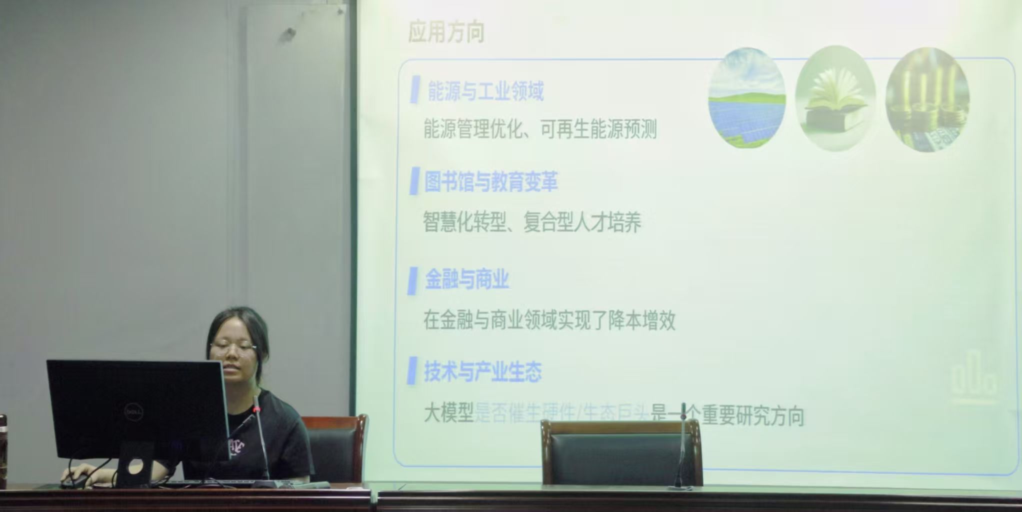 活动伊始,吴沛谦邀请学生钟裕欣同大家分享关于“DeepSeek大模型”的研究情况。钟裕欣同学从研究现状、研究方法、研究工具、共性技术方法、行业趋势与挑战以及未来研究方向建议等方面了向大家作了详细报告。她提到,在社会发展过程中,“DeepSeek”面临着数据隐私保护、算法偏见等伦理挑战,未来需要突破垂直领域适配性等瓶颈,只有不断优化技术,才能提高该软件在不同领域的应用效果。学生交流结束后,吴老师对她的分享进行了总结。他针对报告内容提出了专业的建议和指导,帮助大家进一步深化了对“DeepSeek大模型”的理解。