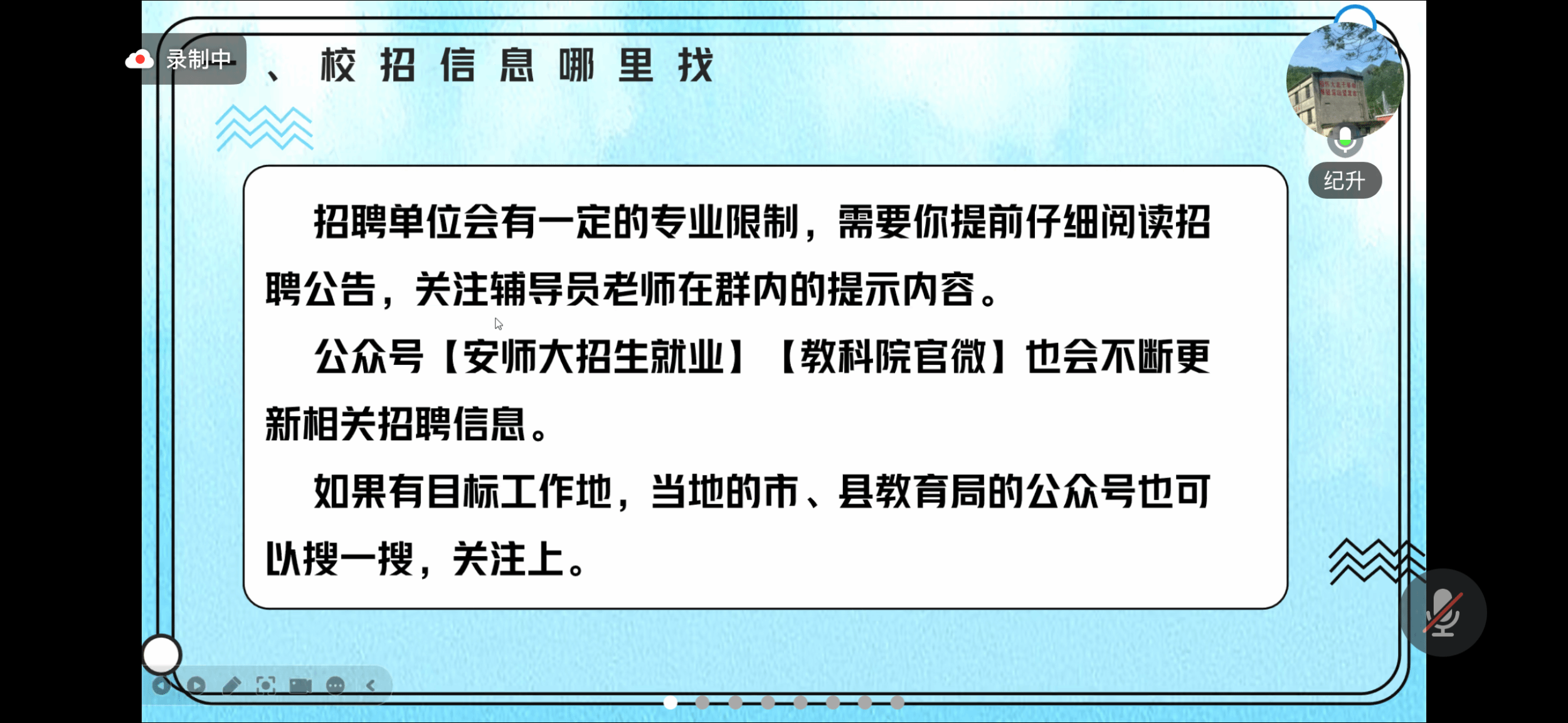 分享会上,四位校友结合自身职业路径提供实战指导。现任毛坦厂中学教师的王之菊详解教师编制备考策略,建议关注权威教育公众号获取招聘信息,笔试阶段强化教育学核心知识背诵与真题训练,面试时注重“去套路化”试讲,通过视频复盘提升表现力。昆山康桥国际学校教师陈迩桐分享私立学校求职技巧,强调面试中需塑造专业“人设”,通过模拟演练展现职业热情,并主动匹配岗位需求。安吉县第二小学教师纪升针对校招流程,提出简历需突出教学实践成果,面试中融入板书设计与创新教学环节以增强竞争力。安徽财贸职业学院辅导员黄雅芬系统解析高校辅导员岗位备考,建议利用信息化工具筛选招聘信息,整合岗位核心职责与政策要点形成应答模板,并在面试中结合校史展现岗位适配度。