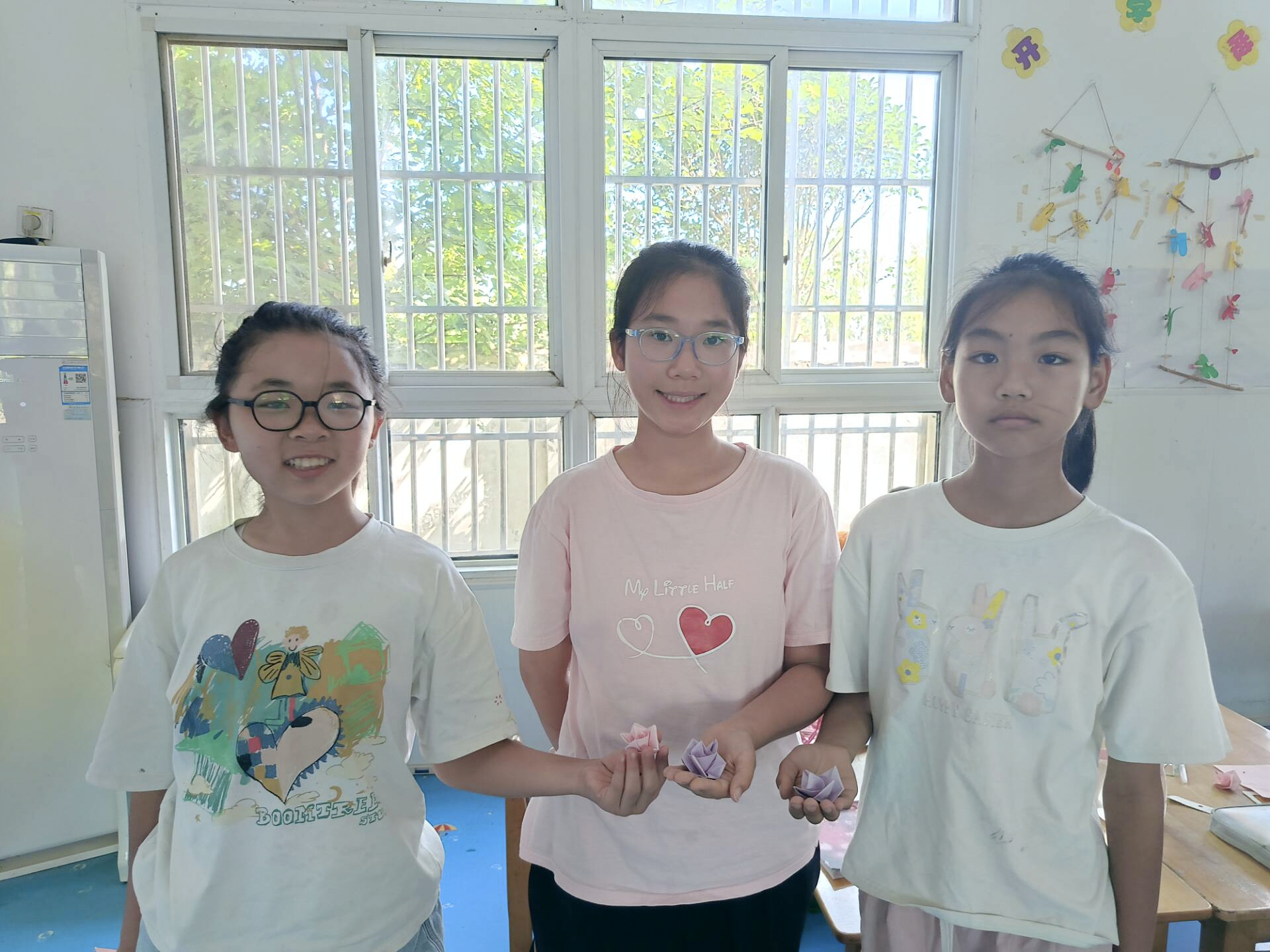为培养学生动手能力与创造能力,志愿者将传统折纸与现代童趣元素结合,以“花”为主题展开教学活动。“老师,这朵花送给你!”二年级的卢欣欣同学举着作品欢呼。课堂通过“折纸+故事”互动环节,让孩子们为作品创编故事,举办故事分享会。