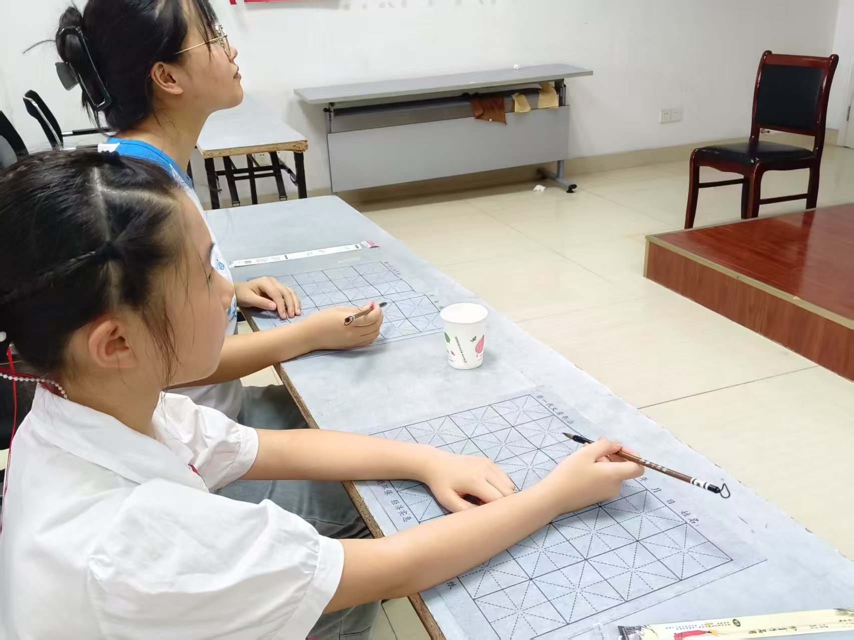 与此同时,书法教学课程也如火如荼地进行着。志愿者们从握笔姿势、基本笔画入手,逐步引导孩子们学习书法的基本技巧。在志愿者的悉心指导下,孩子们一笔一划地书写着汉字,感受着书法艺术的独特魅力。课堂上,墨香四溢,孩子们沉浸在书法的世界里,享受着传统文化带来的宁静与美好。
