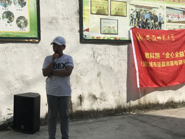 一首《送别》之后,为了更好地让家长了解本次暑期社会活动的出发点和落脚点。安徽师范大学教科院“全心全益” 赴宣城市泾县志愿与调研团队队长夏莲香上台致词:感谢安徽师范大学给予的机会,感谢安徽省宣城市泾县团委以及皖南第一希望小学对团队工作的支持,感谢在座家长对于本次志愿活动的理解与支持。希望通过他们的行动,影响一批人,将爱心传递下去。在队长夏莲香讲话后,队员代表与学生代表分别上台发言,他们表示:十几天的日子虽然短暂,但是这十几天都过得非常充实。最后由家长代表上台发言,他表达了对团队的理解和感谢。