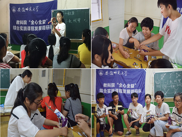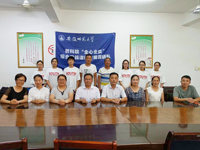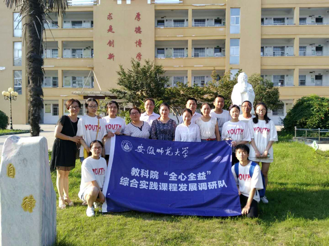 本网讯(教科院 宋玉洁)为了解综合实践活动在我国乡镇发展状况,本着“育创新于真知,育真心于实践”的初心,教科院“全心全益”综合实践活动课程发展状况调研团队于2018年7月14日-16日在六安市霍邱县开展暑期实践活动。