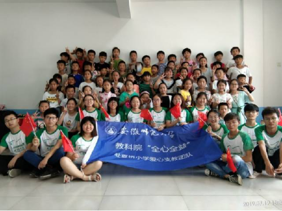 本网讯(教科院 鲍逸麟)2019年7月19日,教科院“全心全益”赴颍上夏桥爱心支教团队的14名队员又一次来到夏桥小学,随着联欢会的结束,本次暑期社会实践完美收官。