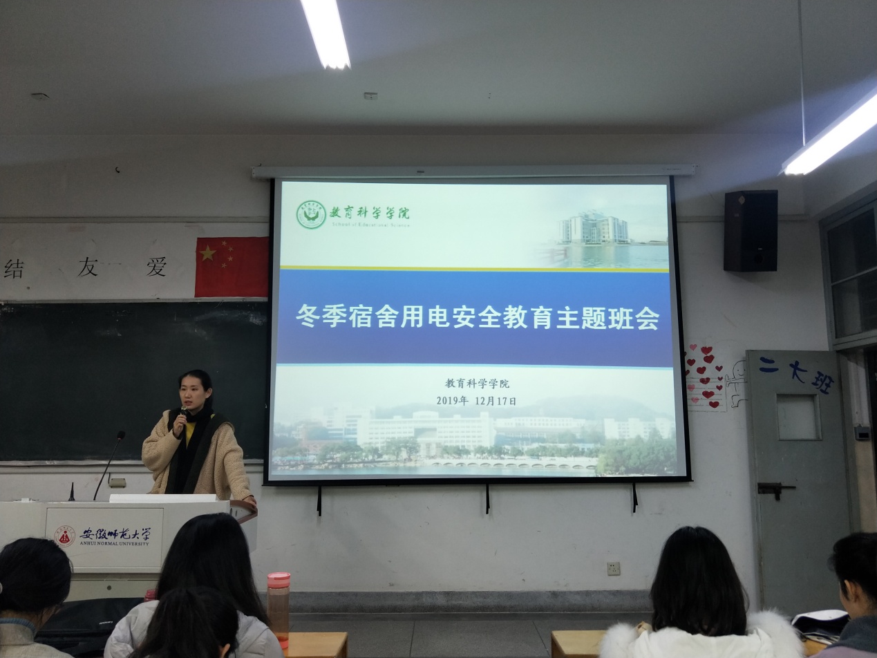 为规范寝室用电,消除安全隐患,牢固树立“安全重于泰山”的意识。近日,2017级全体成员召开“冬季宿舍用电安全”主题班会,会议由2017级辅导员谭茹轩主持。