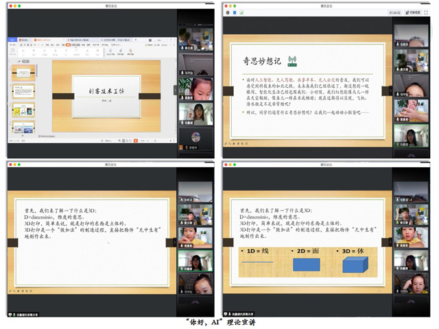 随后,团队开展了以“你好,AI”为主题的理论宣讲活动,以简单的例子向小朋友们科普3D打印技术、智能LED、机器人等科创知识,旨在让小学生们对科创具有初步的认识,同时激发他们对于科创的兴趣与热情,鼓励小朋友们未来可以做出更好的科创作品。