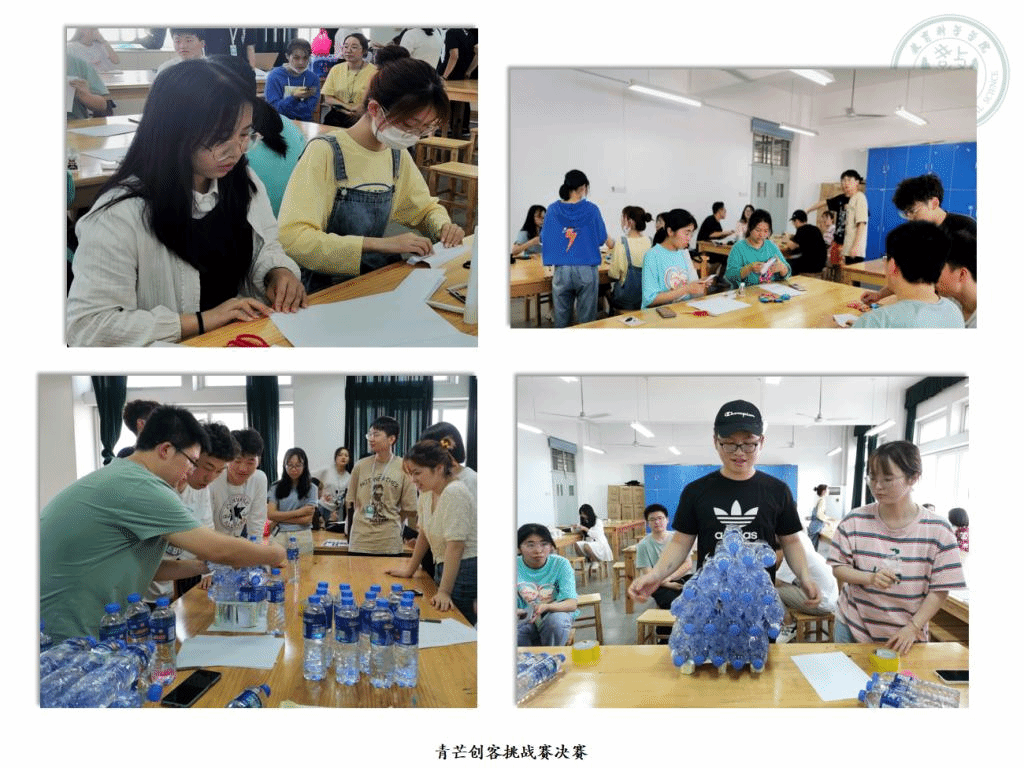 比赛过程中,现场氛围轻松愉悦,选手们竭尽全力认真制作模型。每个小组的模型设计都别具匠心,有的增加模型的桥梁数量和直径以增强桥体强度,有的通过降低重心增加其稳定性,更有甚者直接舍弃了桥墩建造了一个别出新意木筏形状的平板桥。其中,第六小组凭借着绝对优势拔得头筹,以承受31瓶矿泉水的优秀成绩夺得第一名。此外,第五组的木筏模型和第二组的高架桥模型也十分出色,分别以25瓶和23瓶的成绩夺得了第二名。至此,青芒创客小课堂活动圆满结束。