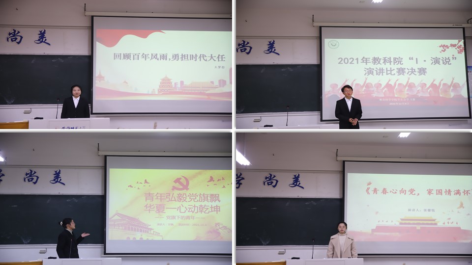 12月3日晚,“I·演说”演讲比赛决赛在田楼8408教室举行。决赛分为主题演讲与即兴演讲两个环节,院团委书记程啸、副书记蔡文、覃伊涵,院团委学生会主席团成员任子贤以及2020年演说比赛获奖选手2019级学前教育专业王轩同学担任比赛评委。“一百年风雨兼程,几十载青年奋进”“青春弘毅党旗飘,华夏一心动乾坤”“回顾百年风雨,勇担时代大任”……同学们在字正腔圆、铿锵有力的演讲中抒发了自己对党和国家的热爱。