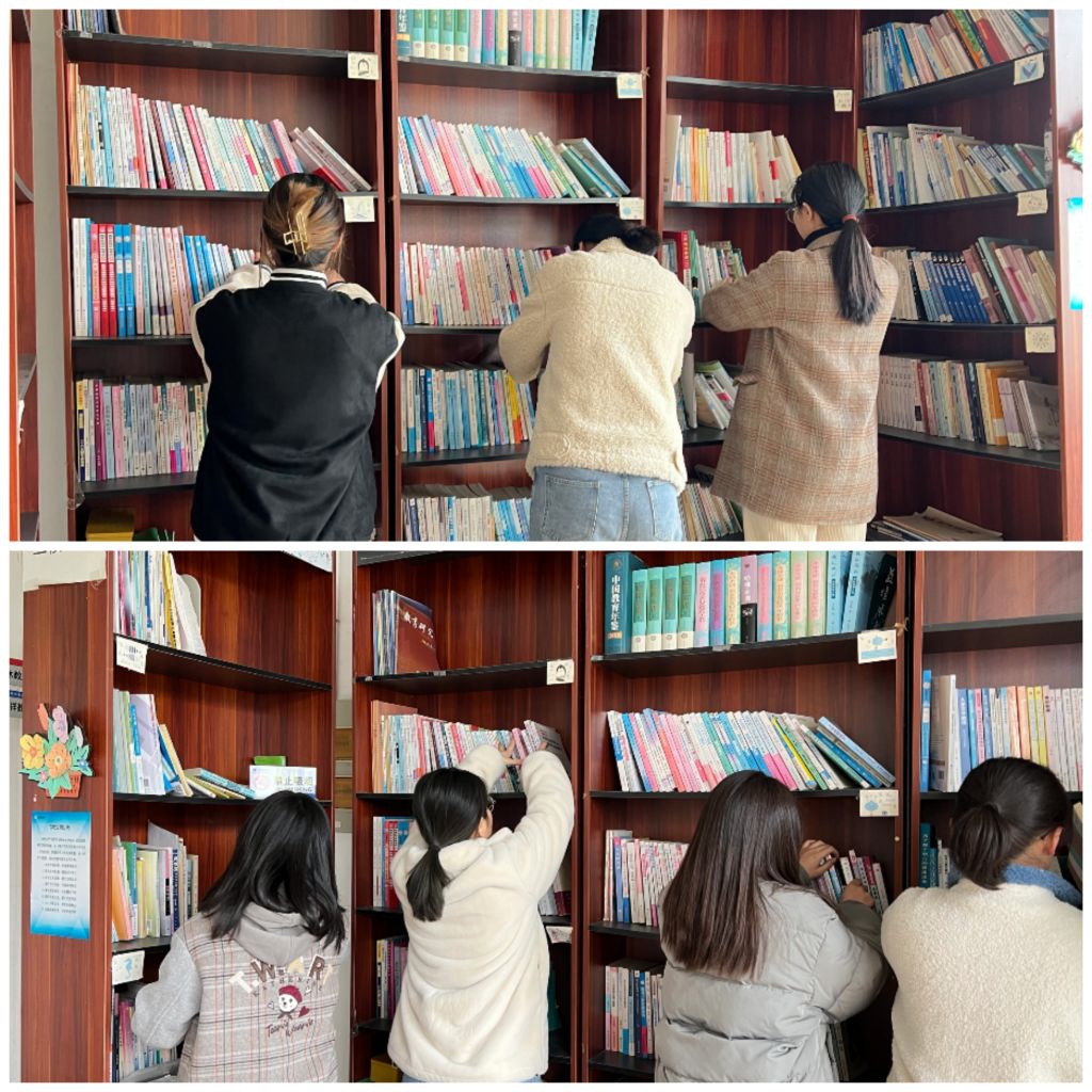 成员对田家炳教学楼B座二楼的学前教育书进行整理。学前教育书吧是本专业学生学习、研讨、交流的重要场所,支部成员认真清理了各书柜上遗留的垃圾,有序整理书籍,并做好书籍分类。