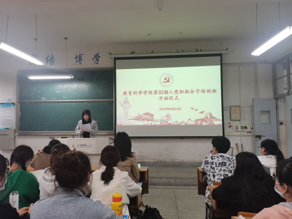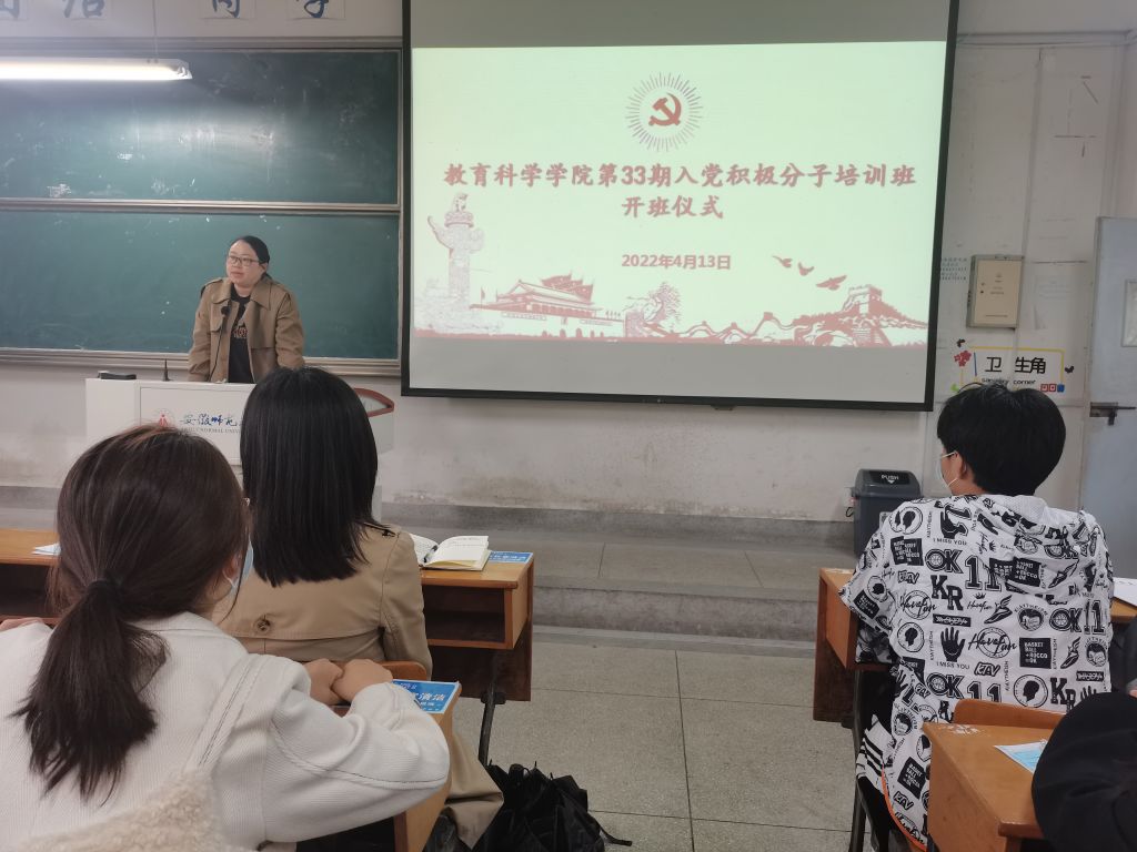 为提升入党积极分子的政治理论水平,强化基本素养,把好党员“入口关”,确保党员发展质量,4月13日下午,教育科学学院第33期(校第63期)入党积极分子培训班开业典礼在田楼8101教室举行。院党委副书记杜凤、培训班班主任蔡文、培训班副班主任赵茜以及本期培训班全体学员出席本次典礼。
