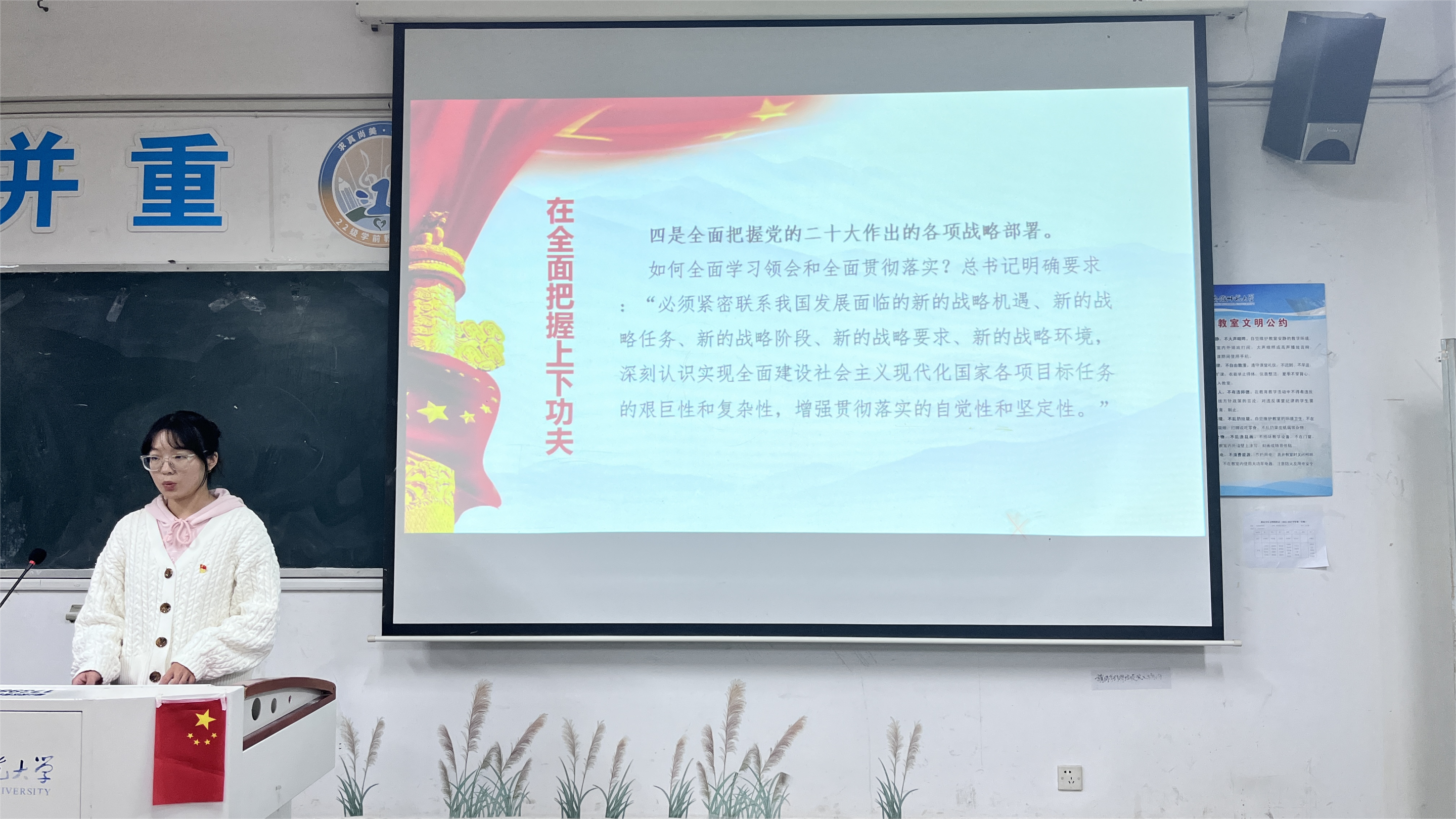 王馨带着学员们进行了以“学习党的二十大精神”为主题的党课。她向学员们仔细讲解了二十大中的核心思想,并鼓励学员在课下多多感悟其中的精华。