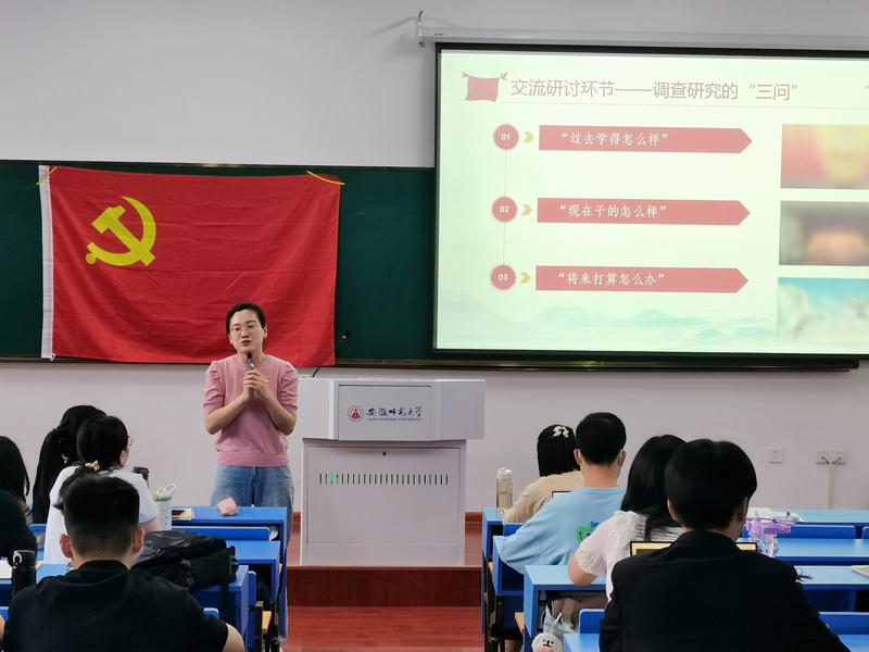 支部全体成员进行学习贯彻习近平新时代中国特色社会主义思想主题教育理论学习,谢雅雯领学了《习近平关于调查研究论述摘编》的相关篇章内容,并结合自身开展教育调查的经历围绕调查研究“深、实、细、准、效”的“五字诀”开展交流研讨。在集中学习之后,所有党员围绕“三问”,即“过去学得怎么样”、“现在干得怎么样”、“将来打算怎么办”展开广泛交流。