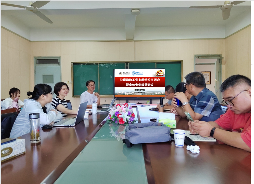 为了深入学习贯彻习近平新时代中国特色社会主义思想,促进支部建设和专业发展深度融合,心理学系于2023年9月6日下午在学院408会议室召开心理学教工党支部组织生活会暨全体专业教师会议,会议由支部书记王礼军主持,全体专业教师参加。