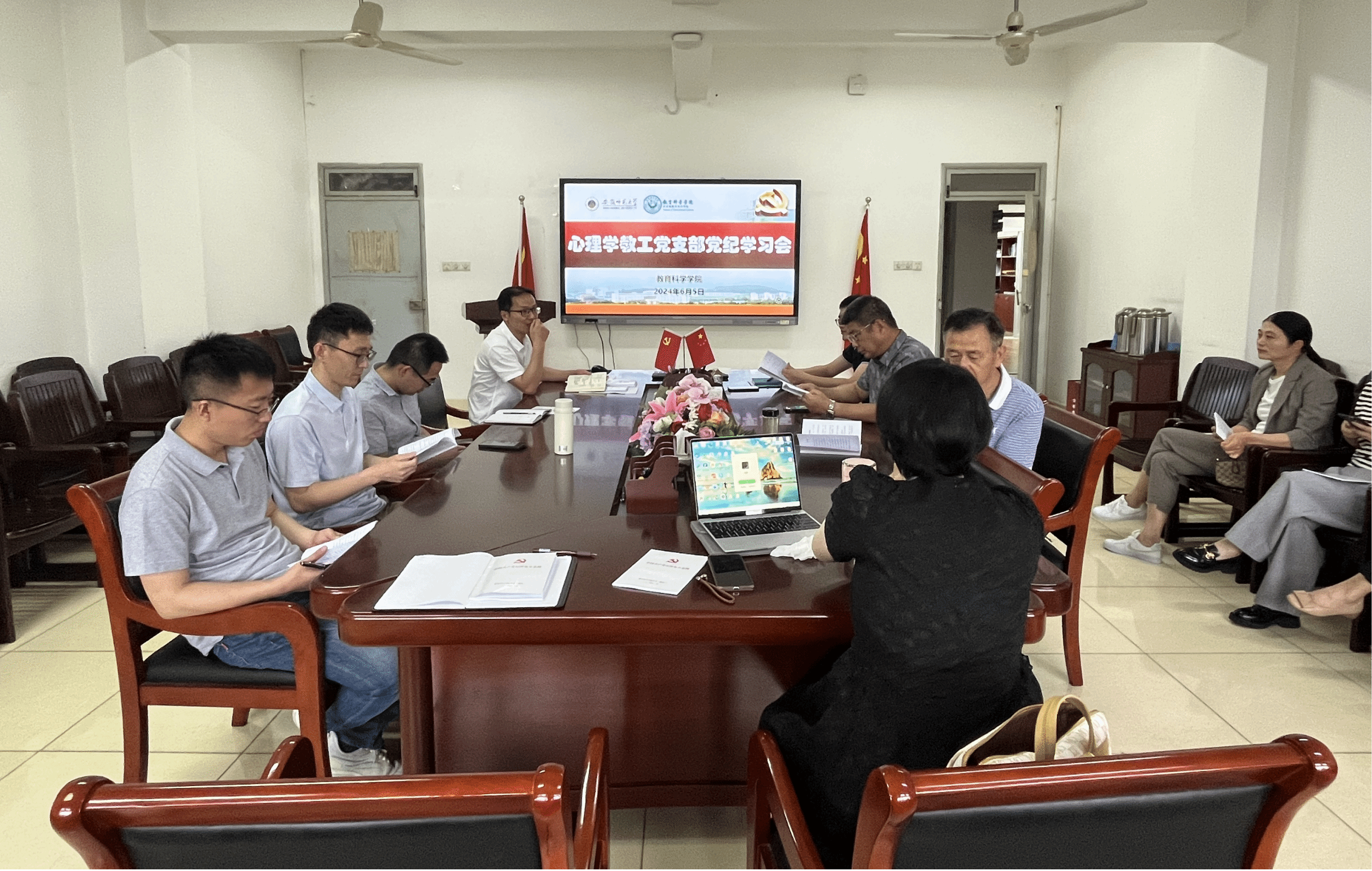 为进一步强化党员的纪律意识,深入学习和贯彻党的纪律规定,心理学教工党支部于2024年6月5日中午在院308会议室召开党纪学习专题会。会议由党支部书记王礼军主持,支部全体党员参会学习。
