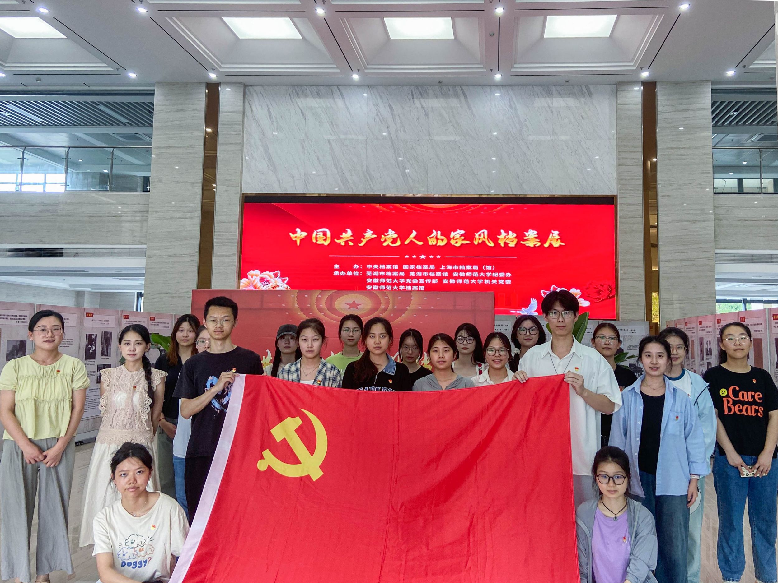 6月14日下午,教育科学学院新发展党员于安徽师范大学花津校区文典楼一楼大厅参观“中国共产党人的家风档案展”,分党校班主任赵茜以及全体新发展党员参与展览。
