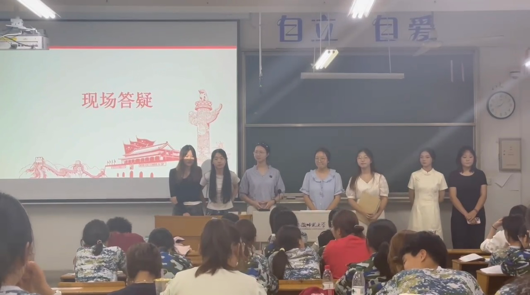 在答疑环节,“驻班党员”和“先锋导员”对2024级新生的问题进行现场答疑解惑,现场的互动不仅拉近了大家的距离,还强化了同学们对“启蒙班”的管理制度和具体安排的认识。主持人进行总结并指出,“启蒙班”是自我提升的平台,大家要认真对待各项任务。