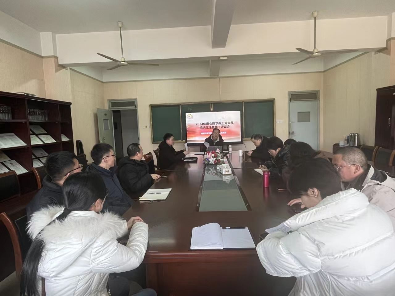 为进一步强化党员意识,凝聚奋进力量,推动心理学党支部建设和学科高质量发展,2025年2月26日,心理学教工党支部在学院408召开2024年度组织生活会暨民主评议会。会议由党支部书记王礼军同志主持,学院党委委员、副院长韩建涛列席指导。