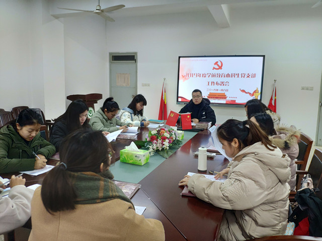 本网讯(教科院 曹玲玲 龚伟)为全面落实新一年支部工作计划,帮助支部成员从整体上把握支部工作细则,理解支部工作新形式,践行党支部标准化建设要求,学前教育本科生党支部在前期支委扩大会议的基础上于1月8日上午10:00召开2019年度工作布置会,支部全体成员参与了此次会议,会议由支部书记龚伟主持。