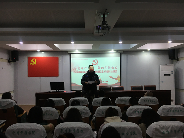 本网讯(教科院曹玲玲)为提升支部成员理论素养,强化宣讲能力,提高演讲技巧,为接下来的“骨干引领计划”工作开好头,3月6日晚19:00,学前教育本科生党支部在院学术交流中心举办理论素养提升培训会,文学院2018级辅导员徐雅萍老师和新传学院2017级郝宛琴同学受邀作为本次培训会的主讲嘉宾,支部全体成员和2017级、2018级启蒙班学员参与了本次培训,活动由支部书记龚伟老师主持。