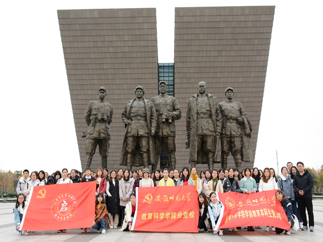本网讯(教科院 施羽晗 艾瑞雪)为缅怀革命先烈的丰功伟绩,让学员进一步增强责任感、使命感、凝聚力,铭记历史前进的脚步。11月17日,教科院第28期入党积极分子培训班学员以及2018级入党启蒙班成员共赴合肥市渡江战役纪念馆以及安徽名人馆学习。本次活动由培训班班主任龚伟和启蒙班班主任莫大贡带队。