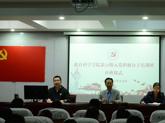 本网讯(教科院 施羽晗 艾瑞雪)为进一步加强学生入党积极分子的培养教育工作,10月17日下午,教科院第28期入党积极分子培训班开班典礼暨第一次教学活动在院学术交流中心成功举办。院党委书记方泓、院党委副书记张如华、培训班班主任龚伟、培训班副班主任艾瑞雪及全体学员参加了开班典礼。开班典礼由班主任龚伟主持。