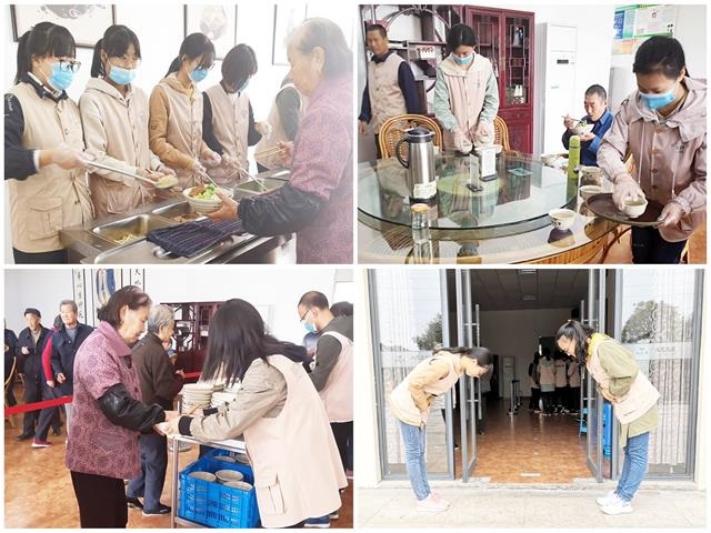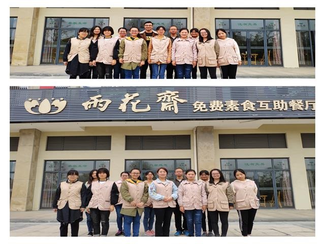 午餐阶段,学员们明确分工,打菜、盛饭、端汤以及迎宾,大家相互协作,积极配合,为雨花斋的老人们尽心服务,紧张忙碌的工作之后,送走了前来就餐的老人,学员们也吃上了热腾腾的素食饭菜。本着雨花斋 “吃多少打多少”的原则,大家也着实完成了一次“光盘行动”。