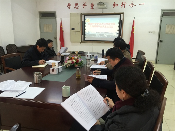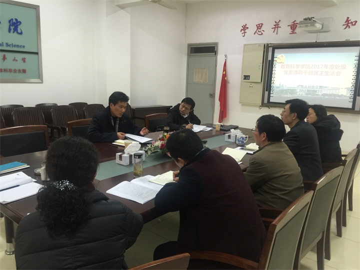 最后,毕明福对学院各位同志的对照检查发言进行了总结,充分肯定了本次民主生活会“讲得真、讲得像、讲得好”,真正发挥了民主生活会“解析灵魂,洗涤心灵”的功用。他强调,大家要切实以学习贯彻十九大精神为主线,加强政治建设,处理好集体与个人、领导和学者、党性与个性的关系问题,努力做到信念过硬、政治过硬、责任过硬、能力过硬、作风过硬;要以评估申报总结为抓手,抓好学院内涵建设,做到“高峰底下造高原、本色中凸显特色”;要以教育教学改革为重点,增强教科院为学校发展的支撑力。他期望教科院领导班子能够继续团结一心,协同全院师生,努力拼搏,开创教科院更加美好的新时代!