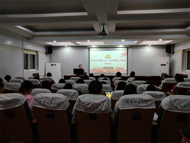 10月11日晚,启蒙班开班仪式暨培训第一讲在学院三楼学术交流中心顺利举行。参与此次活动的有辅导员程啸、5位驻班党员、2017级学前教育专业入党积极分子和第二期全体启蒙班成员,活动由龚伟老师主持。