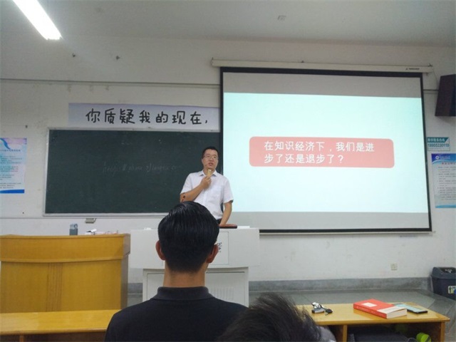 简单的开班仪式之后,龚伟老师带来了“最熟悉的陌生人——今天再谈马克思”一讲。当问及对于马克思的第一印象时,同学们纷纷表达了自己的看法和观点。厉害的人,饱受苦难却坚持理想的人,引路人,伟大的革命家、思想者……这些正面却略显稚嫩的回答恰恰反映了大家对于马克思的模糊认识。在接下来的一个半小时的时间里,龚老师结合“朋友圈”表情包现象,图书馆的“无人问津”,以幽默风趣、富有灼见的语言,从马克思的出身、简历和志向等三个方面,向同学们呈现了一个鲜活的、有血有肉的、爱智慧的思想者形象。他指出,阅读和旅行始终有一个在路上,与伟人对话、与信仰同步,孤独但不寂寞,相信同学们在思索中能够感受到启蒙班的力量和温暖。
