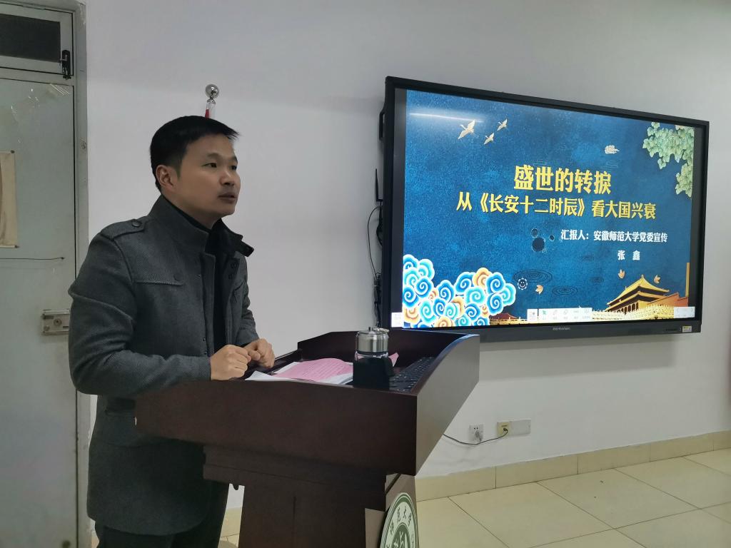 本网讯(教科院 詹洁)为帮助同学们进一步了解中国历史,树立文化自信,启蒙班于11月20日19:00在田楼B座308会议室,邀请校党委宣传部网宣办负责人张鑫老师与同学们进行交流分享。本次活动由启蒙班班主任龚伟老师主持。