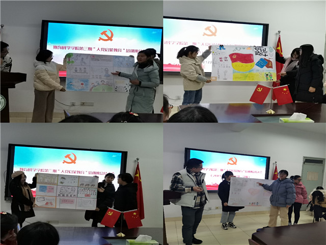 颁发仪式结束后,启蒙班10个小组成员依次用九宫格绘画作品展示了一学期的所思所得。同学们结合“最熟悉的陌生人——马克思”“合群与不合群”“雨花之行”等内容介绍了本学期参与的理论学习与实践活动,并结合绘画作品“师大之缘”“军训之苦”“启蒙之星”等内容回顾了大学生活,分享了自己的成长心路。随后,17级驻班党员陈燕萍和李月两位同学分别就第一学期工作和第二学期规划进行了总结布置。