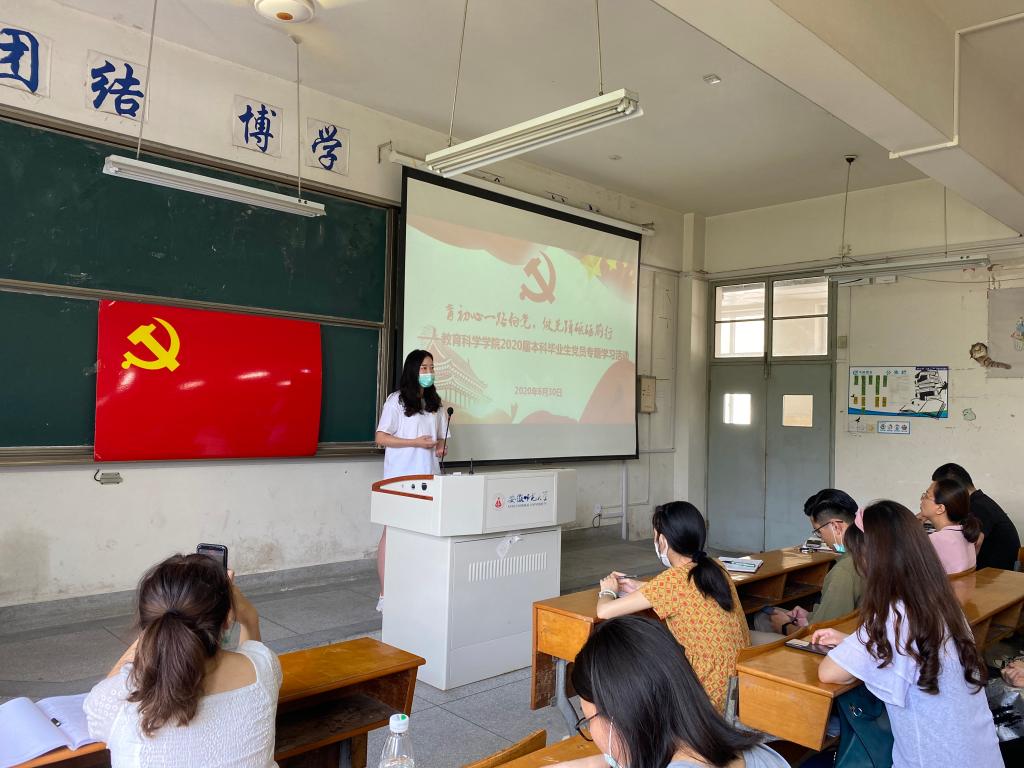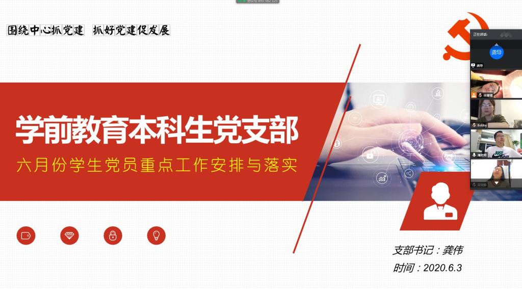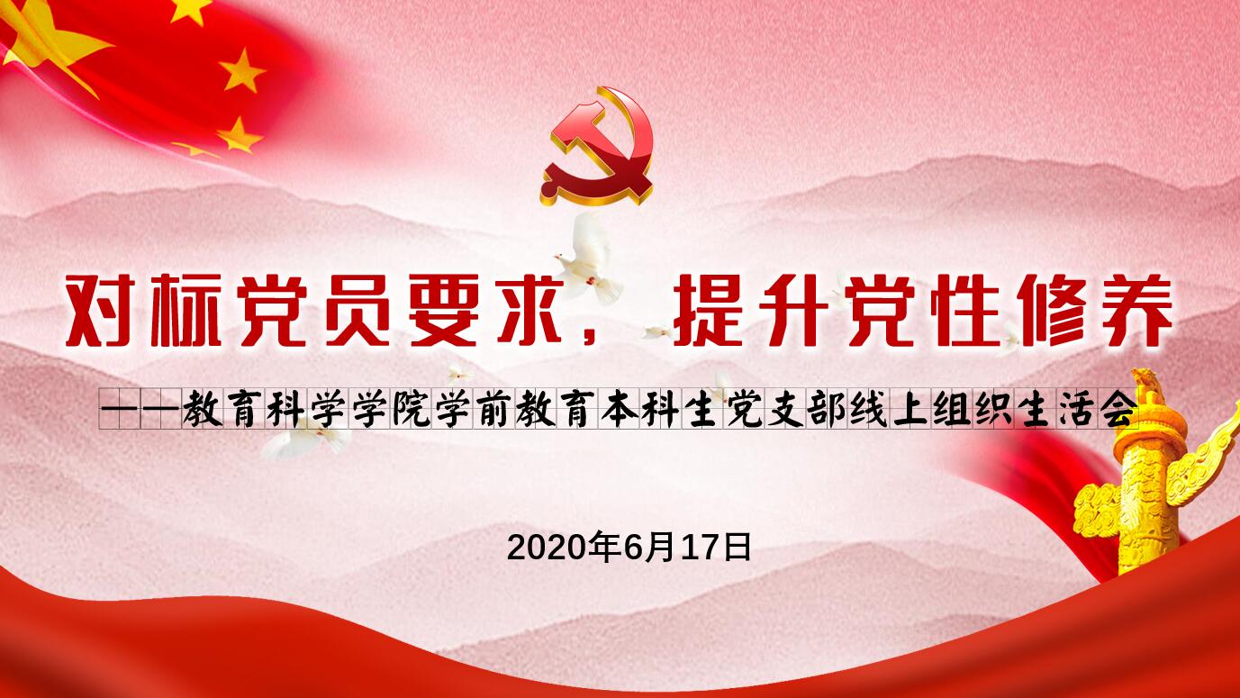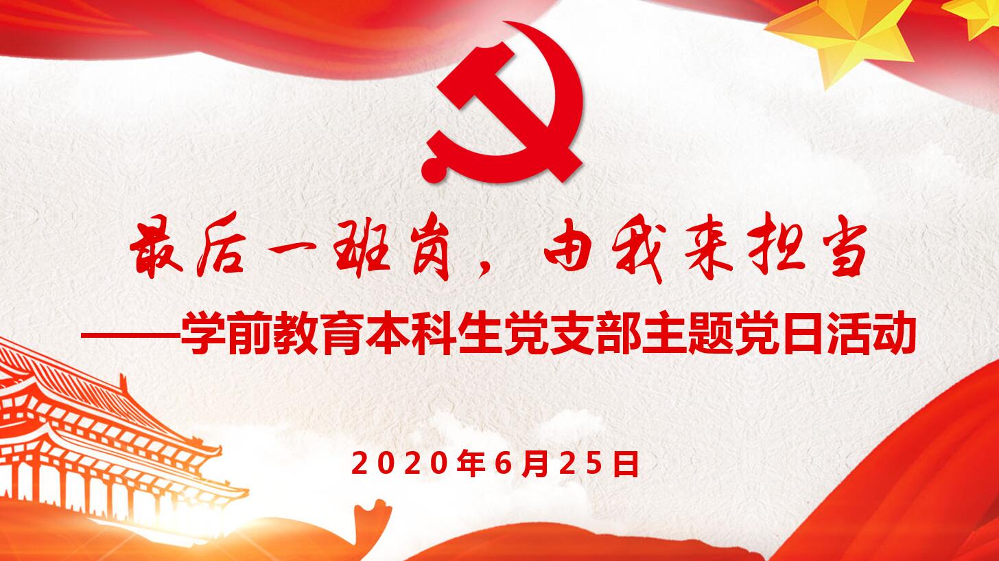 本网讯(教科院 李月 龚伟)为加强毕业生党员教育管理,切实做好毕业生党员文明离校和组织关系转移工作,2020年6月3日至7月3日期间, 学前教育本科生党支部根据学校春季学期学生返校和校园疫情防控要求,精心组织策划了“四个一”活动,旨在使广大毕业生党员进一步强化党员意识,增强组织观念和纪律观念,充分发挥其在学习、工作、就业和离校中的先锋表率作用。