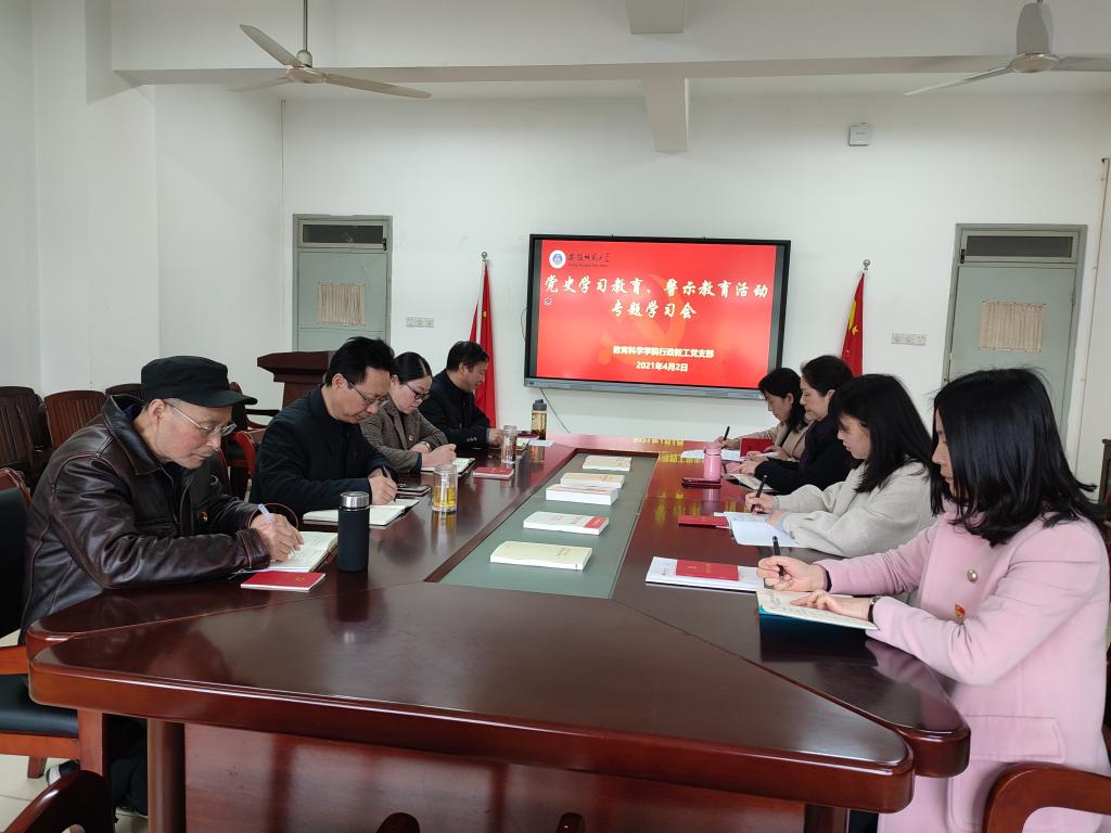 本网讯(教育科学学院 黄引娣/文 莫大贡 程啸/图 )4月2日下午,行政教工党支部在学院308会议室开展党史学习教育及警示教育活动,活动由支部书记卞纲要主持,行政教工党支部全体党员参加了此次活动。
