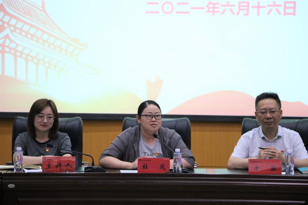 本网讯(教科院 曾可伊)为致敬中国共产党成立100周年,提升学生党员的党性修养,2021年6月16日下午,教育科学学院于田家炳教育书院三楼报告厅开展学生党员交流会。院党委书记方泓、党委副书记杜凤、党委秘书袁黎平、心理学本科生党支部书记、2017级辅导员谭茹轩、全体毕业班党员以及2021年上半年新发展党员参与了本次会议。学前教育本科生党支部书记、2020级辅导员蔡文主持交流会。