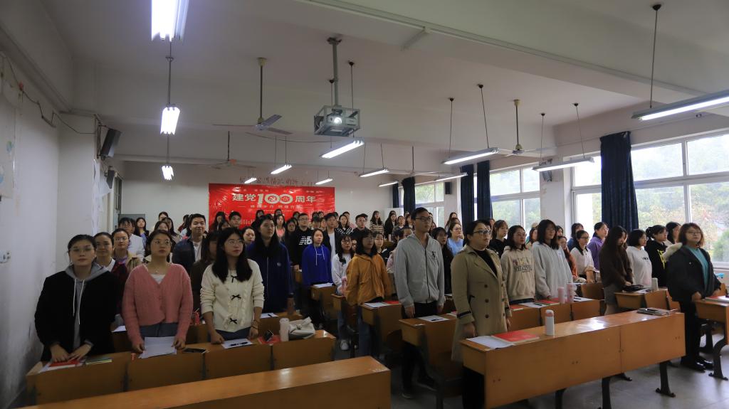 开班典礼在庄严肃穆的国歌中拉开帷幕,全体与会人员起立奏唱国歌。蔡文首先宣读了学院党委关于本期入党积极分子培训班通知文件,就培训班教学及管理工作进行通知。本期党校培训班班长、2019级小学教育专业的江宇璇同学代表全体培训班成员发言。江宇璇表示,作为一名入党积极分子不仅要学习党的光辉历史,更要汲取背后蕴藏的智慧和精神,她还从自律、自省、自励三方面鼓励大家在实现中国梦的生动实践中放飞青春梦想!