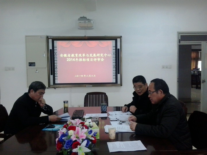 本网讯(马兴)2月8日下午,安徽省教育改革与发展研究中心2014年重点招标项目评审会在安徽金年会举行。基地常务主任朱家存教授、基地副主任葛明贵教授和周兴国教授参加了此次评审会。
