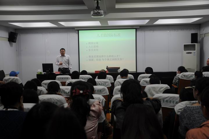 本网讯(教科院 叶大鹏  严彦蕾)2014年3月28日上午,应安徽省教师教育协同创新中心邀请,华东师范大学教育学系主任、博士生导师朱益明教授来我校作题为“迈向国际化的学校教育”的学术报告。报告会由该中心执行主任、教育科学学院副院长阮成武教授主持,教育科学学院部分教师、相关专业研究生、本科生及安师大附属小学、育红小学部分教师参加了此次报告会。