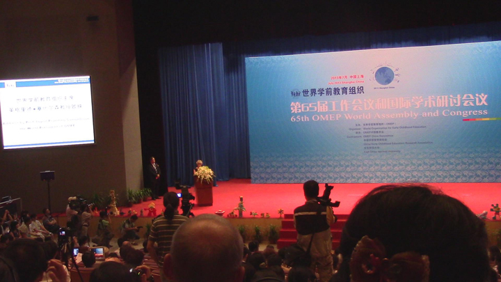 OMEP是一个致力于早期儿童保育与教育的世界教育网络机构,也是一个非政府非盈利性组织,本次大会主题是“促进学前教育发展:机会与质量”。11日上午开幕式上,世界学前教育组织(OMEP)主席英格丽德.塞缪尔森教授致辞,她强调在普及早期教育机会的过程中不能舍弃教育质量的发展,要缩小各国、各地区之间由于贫富不同而引起的学前教育质量差距;同时,她强调玩耍是早期儿童的主要学习方式,强调成人对儿童发展的关注与支持,要为孩子提供一个和平与安全的成长环境。此外,联合国儿基会驻华代表麦吉莲女士、教育部刘利民副部长、上海市副市长、华东师范大学党委书记以及中国学前教育研究会学术委员会主任冯晓霞教授也分别致辞,庆贺大会的召开,并剖析了当前各地学前教育发展的主要问题,表达了对学前教育发展前景的期待。开会议期间,与会者还观看了精彩的幼儿表演,举行主题演讲、论文海报、工作坊、专题研讨及专题分会场,与会专家就当前学前教育发展中共同关心的问题展开了热烈的交流与讨论。