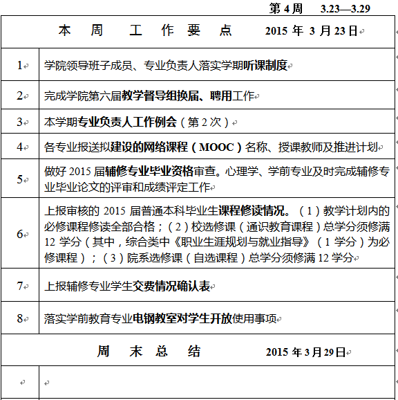 教育科学学院2014-2015学年第二学期教学工作第4周周报表
