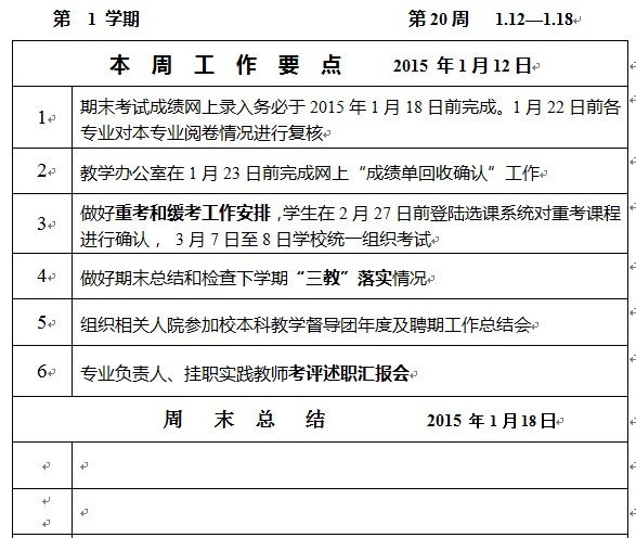 教育科学学院2014-2015学年第一学期教学工作第20周周报表